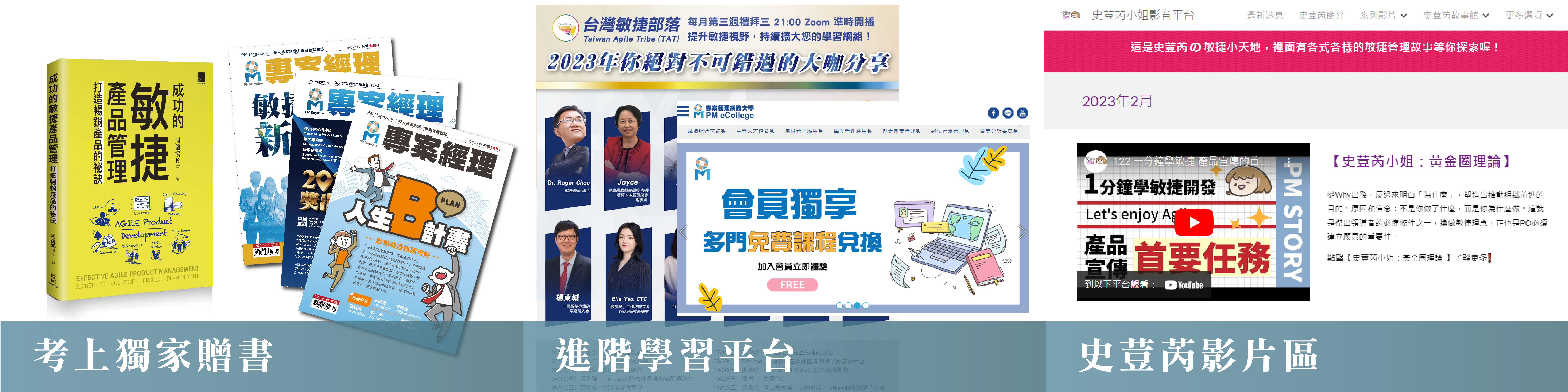 - 進階學習平台:全台最大TAT敏捷社群(大師級講座)及專案經理網路大學線上課程